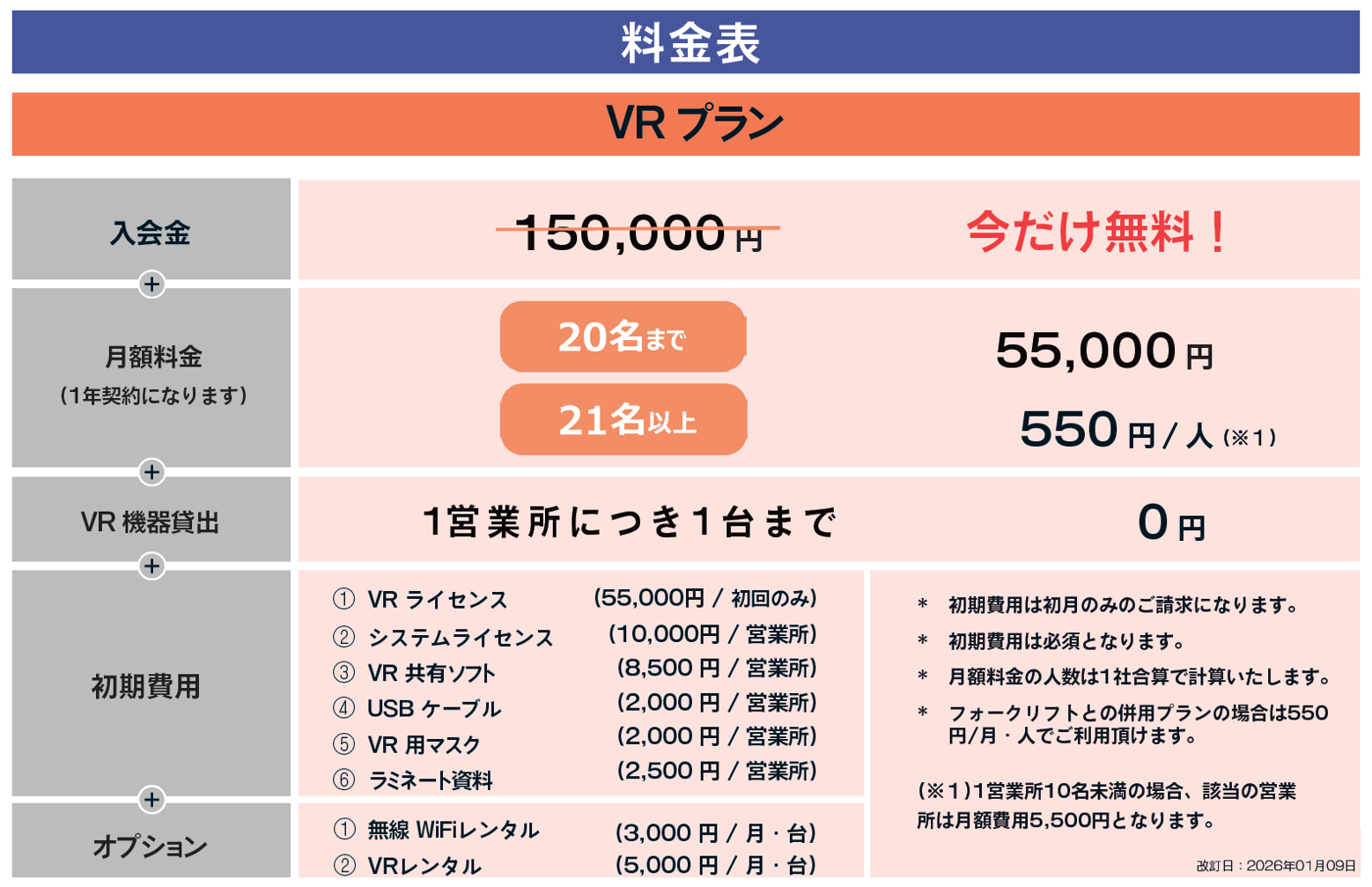 らくらく監査システムの登録人数でカウントしております。そのため、登録を20名に抑えることで、21名以上在籍している事業所様でも55,000円/月でVR動画の使用できます。